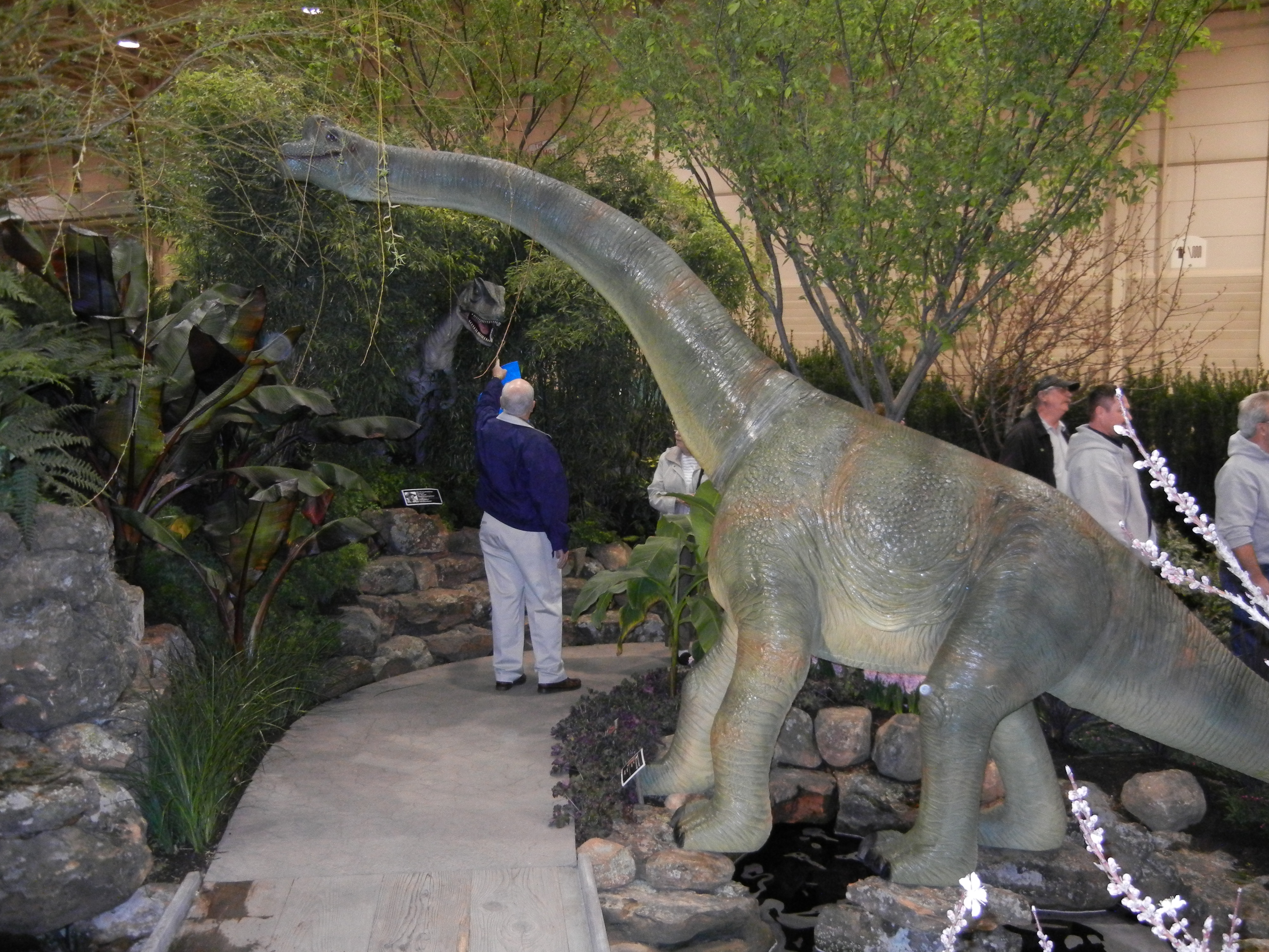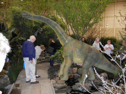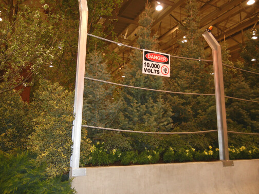 You enter this theme garden at your own risk. The entrance and the electric fence are perfect. It's almost hard to remember that it is just an indoor garden with a huge variety of trees, shrubs, plants and dinosaurs.  |